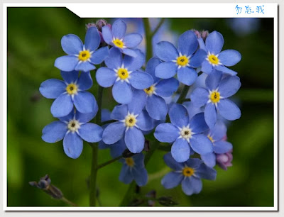 播繁殖。勿忘我花小巧秀麗,藍色花朵中央有一圈